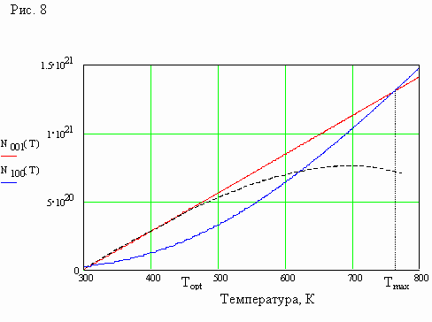 К зависимость населённости лазерных уровней от температуры показана на рис. 8.