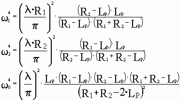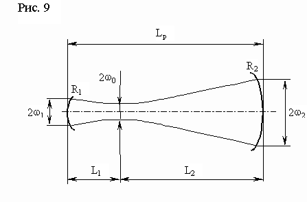 в месте перетяжки определяются длиной волны и параметрами резонатора (