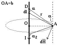 dB-индукция, созд. в точ. A. dB=(mm 0 /4p)·(I·dl·sina/r 2 ) [1] dH=(I·dl·sina)/(4pr 2 ) [2] Индукция магн. поля, созданная элементом проводника dl с током I в точке A на расстоянии r от dl пропорц. силе тока, dl, синусу угла между r и dl и обр. пропорцион. квадрату расстояния r. dB=(mm 0 /4p)·(I·[dl,r] /r 3 ) Значение з-на Б-С-Л заключается в том, что зная dH и dB от dl можно вычислить H и B проводника конеч. размеров разл. форм. Применение з-на Б-С-Л Поле прямого отрезка конечной длины с током.