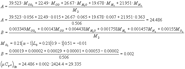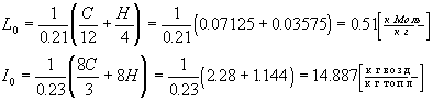 Элементарный состав бензина в весовых массовых долях: С=0.855 ; Н=0.145 Молекулярная масса и низшая теплота сгорания: