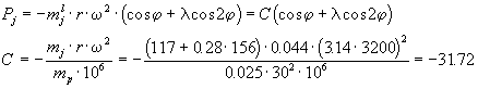 Равнодействующая сил инерции I порядка каждой пары цилиндров, будучи направлена по радиусу кривошипа, уравновешивается противовесом, т.е. в двигателе с противовесами:
