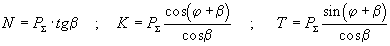 Диаграмма сил N, K, T