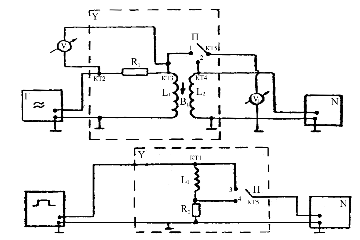 Цель работы: экспериментальное исследование зависимости ЭДС индукции от ориентации контура в магнитном поле, измерение взаимной индуктивности двух индуктивно связанных катушек, индуктивности одной из них, исследование зависимости поля от времени в RL-цепи при переходных процессах. Теоретическая часть. Схема экспериментальной установки.
