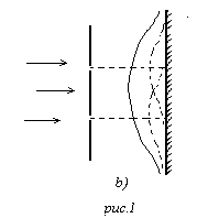 Элементы квантовой механики 1. Волновая функция Я уже упоминал, что строение вещества, поведение систем на атомарном уровне классическая механика оказалась бессильной описать, то есть свойства систем атомарных масштабов не вписываются в правила игры классической механики и классической физики. Оказалось, что всё потому, просто, что исходные представления классической механики оказываются неприменимы в этом случае. И самое главное, что вообще исходное базовое понятие классической механики УчастицаФ , локализованный в пространстве объект, движущийся по определённой траектории с определённой скоростью, это исходное представление оказалось неприменимо. Хотя, употребляются слова Участица электрон летитФ , но картину электрон, который летит по определённой траектории, в каждой точке с определённой скоростью, выкиньте из головы, весь этот образ совершенно не работает, и мыв увидим, почему. 1 ) Классическая механика неприменима в этой области. §4. Волновые свойства частиц Проведём мысленный эксперимент. Пусть у нас имеется экран, в экране щель, на эту щель падает поток частиц (для определённости электронов) , 2 ) на пути этого пучка ставим непрозрачный экран со щелью, а за ним ставим другой экран, на котором регистрируются попадания электронов. 3 ) Если пучок достаточной интенсивности, то мы будем наблюдать вот такое распределение интенсивности свечения ( рис. 1. а ) . Если электроны пускать поштучно, наберём статистику, получим вот такое распределение, пока всё нормально. А дальше мы делаем вот что: ставим две щели, что надо ожидать? От одной щели получаем такое распределение, от другой тоже, они накладываются, и ожидаемая картина такая ( рис. 1. b ) .
