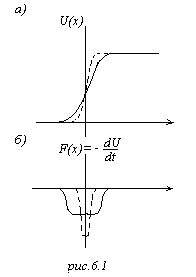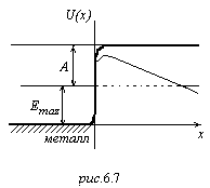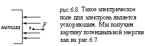 Если рисовать потенциальную энергию электронов в металле, то это можно изобразить так: вне металла уровень постоянный, там нет электрического поля, а внутри металла потенциальная энергия падает. Это соответствует тому, что в этой области действует сила