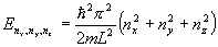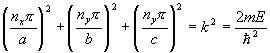 это рёбра ящика. Вот что такое квантование, имеем дискретные состояния (тройка чисел задаёт волновую функцию определённой конфигурации) и этим состояниям соответствует энергия. Важно, что нет никаких промежуточных состояний, переходных форм нет. Состояние (1,1,1) называется