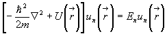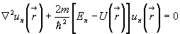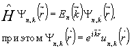 Потенциальная энергия выглядит, конечно, сложным образом: это потенциальные ямы в окрестности атомов, и её не только ядра создают, там и все электроны. Выражение для гамильтониана задать очень сложно, надо учитывать взаимодействие электронов между собой, взаимодействия с ядрами, взаимодействие ядер между собойЕ, но нам это не важно, нам важно одно – эта функция периодическая. Напишем уравнение на собственные значения гамильтониана, где функция имеет такой вид