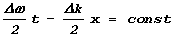 ќто так называемаЯ фазоваЯ скорость. Ќо предположим, мы хотим измерить скорость распространениЯ волны. ‚ообще говорЯ, длЯ этого создаетсЯ некоторый импульс (группа волн, волновой пакет, цуг) и измерЯетсЯ времЯ прохождениЯ им некоторого расстоЯниЯ. Ќо тогда мы определим скорость волны как скорость перемещениЯ не точки с постоЯнной фазой, а точки с постоЯнной амплитудой (подчеркнутаЯ группа сомножителей в выписанном выражении) :