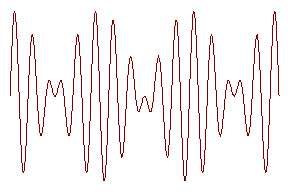 ‘овсем не обЯзательно, чтобы такаЯ группа волн имела показанную на рисунке динамику увеличениЯ и уменьшениЯ амплитуды, показанный профиль. „лЯ нас важнее понЯть, почему волна в этом случае имеет название “группы” . „лЯ этого надо вспомнить возникновение биений, которые наблюдаютсЯ при сложении колебаний