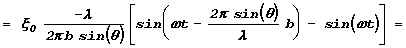 “ нас получилось довольно громоздкое “многоэтажное” выражение, в смысле которого нам надо разобратьсЯ. ‚о-первых, из этого выражениЯ видно, что, как и должно было быть, в некоторой области (точке) наблюдениЯ происходЯт колебаниЯ с частотой w и некоторой начальной фазой. ‚ выражение длЯ амплитуды этих колебаний входит множитель x