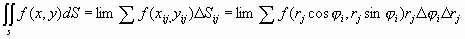 (4) где d - максимальный диаметр ячеек D S ij и сумма распространена на все ячейки указанного выше вида, целиком содержащиеся в области S. С другой стороны, величины j i и r j суть числа и их можно рассматривать как прямоугольные декартовые координаты некоторых точек плоскости Oj r . Таким образом, сумма (4) является интегральной суммой для функции f(r cosj , r sinj )r,