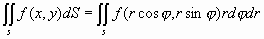 (6) Выражение dS = r dj dr называется двумерным элементом площади в полярных координатах. Итак, чтобы в двойном интеграле (1) перейти к полярным координатам, достаточно координаты x и y заменить по формулам (2), а вместо элемента площади dS подставить выражение (7).