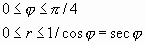 Область интегрирования здесь есть треугольник S, ограниченный прямыми y=0, y=x, x=1 (рис 4). В полярных координатах уравнения этих прямых записываются следующим образом: j =0, j =p /4, r cosj =1 и, следовательно, область S определяется неравенствами