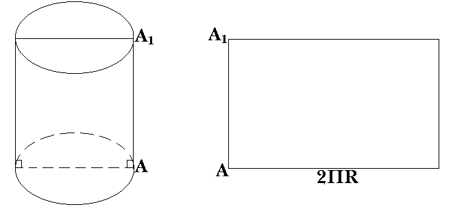 L-длина круга L=2ПR Sбоковой поверхности=Lh h-высота след. Sб. п. =2ПRh Площадь полной поверхности цилиндра - это сумма площадей боковой поверхности двух оснований(S=ПR*R) . Sп. п. =2ПR(R+h) . Вписанный и описанный цилиндр: Призма называется вписанной в цилиндр, если основание её равные многоугольники, вписанные в основание цилиндра, а боковые рёбра являются образующими цилиндра.